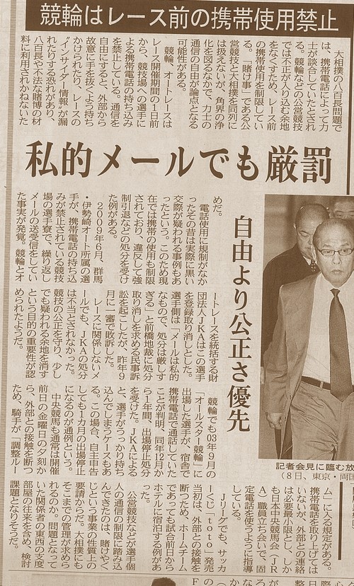2009ǯ6·î¡¢·²ÇÏ¡¦°ËÀªºê¥ª¡¼¥È½ê°¤ÎÁª¼ê¤¬¡¢·ÈÂÓÅÅÏûý¤Á¹þ¤ß¤¬¶Ø»ß¤µ¤ì¤Æ¤¤¤ë¶¥µ»¾ì¤ÎÁª¼êÎÀ¤Ç¡£·«¤êÊÖ¤·¥á¡¼¥ë¤ÎÁ÷¼õ¿®¤ò¤·¤Æ¤¤¤¿»ö¼Â¤¬È¯³Ð¡£¶¥Îؤȥª¡¼¥È¥ì¡¼¥¹¤òÅý³ç¤¹¤ëºâÃÄË¡¿ÍJKA¤Ï¤³¤ÎÁª¼ê¤òÅÐÏ¿¼è¤ê¾Ã¤·¤È¤·¤¿¡£Áª¼ê¦¤Ï¡Ö¥á¡¼¥ë¤Ï»äŪ¤Ê¤â¤Î¤Ç¡¢½èʬ¤Ï¸·¤·¤¹¤®¤ë¡×¤ÈÁ°¶¶ÃϺۤ˽èʬ¼è¤ê¾Ã¤¹¤òµá¤á¤ë̱»öÁʾ٤òµ¯¤³¤·¤¿¤¬¡¢ºòǯ9·î¤Ë1¿³¤ÇÇÔÁʤ·¤¿¡£