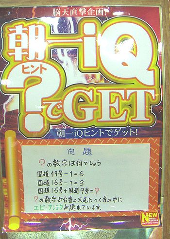 Ä«°ìiQ?(¥Ò¥ó¥È)¤ÇGET ¡¡¡¡¡¡¡¡¡¡ÌäÂê ¡©¤Î¿ô»ú¤Ï²¿¤Ç¤·¤ç¤¦ ¹ñÆ»49¹æ-1¡á6 ¹ñÆ»16¹æ-1¡á3 ¹ñÆ»16¹æ+¹ñÆ»9¹æ¡á¡© ¡©¤Î¿ô»ú¤¬ÂæÈÖ¤ÎËöÈ֤ˤĤ¯Âæ¤ÎÃæ¤Ë ¡¢ ¥¨¥Ó¡¦¥¢¥ó¥³¥¦¤¬±£¤ì¤Æ¤¤¤Þ¤¹¡£ |