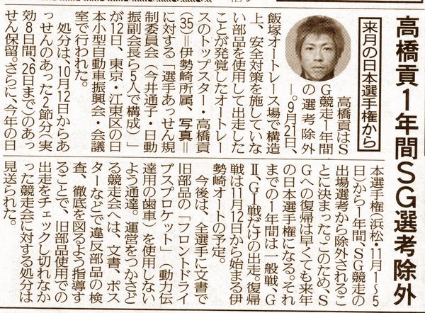 日本小型自動車振興会より処分が下された。http://www.autorace.or.jp/racer_topics/2006/1012-takahasi.html