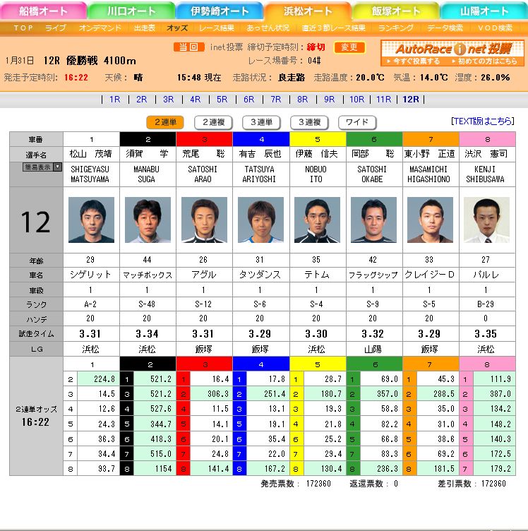 ·ë²Ì 1 1 ¾¾»³ ÌÐÌ÷ ¥·¥²¥ê¥Ã¥È 20 3.31 3.342 2 2 ¿Ü²ì¡¡¡¡³Ø ¥Þ¥Ã¥Á¥Ü¥Ã¥¯¥¹20 3.34 3.376 3 4 ͵ȡ¡Ã¤Ìé ¥¿¥Ä¥À¥ó¥¹ 20 3.29 3.376 4 6 ²¬Éô¡¡¡¡Áï ¥Õ¥é¥Ã¥°¥·¥Ã¥×20 3.32 3.376 5 7 Åì¾®Ìî¡¡ÀµÆ» ¥¯¥ì¥¤¥¸¡¼£Ä 20 3.29 3.381 6 5 °ËÆ£¡¡¿®É× ¥Æ¥È¥à 20 3.30 3.383 7 8 ½ÂÂô¡¡·û»Ê ¥Ñ¥ë¥ì 0 3.35 3.410 8 3 ¹ÓÈø¡¡¡¡Áï ¥¢¥°¥ë 20 3.31 3.393 £²Ï¢Ã± 1¡Ý2 22,550±ß £²Ï¢Ê£ 1¡á2 8,400±ß £³Ï¢Ã± 1 2 4 176,130±ß £³Ï¢Ê£ 1 2 4 26,920±ß