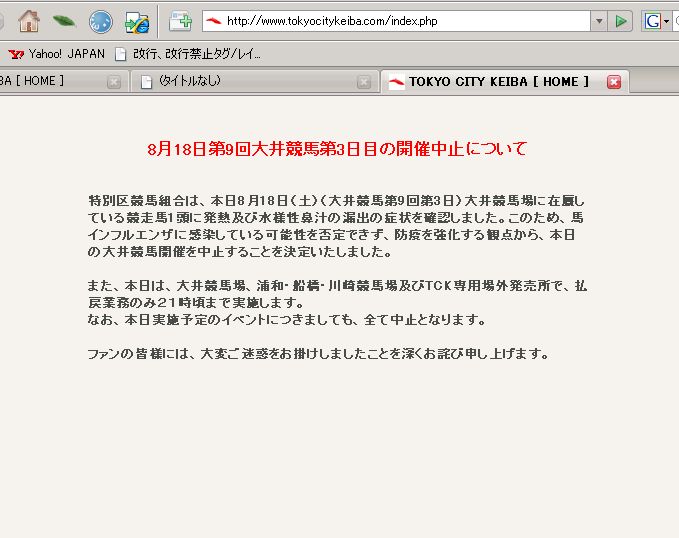 ÇÏ¥¤¥ó¥Õ¥ë¥¨¥ó¥¶ÌäÂê¤Ç¡¢JRA¡ÊÆüËÜÃæ±û¶¥Çϲñ¡Ë¤Î³«ºÅÃæ»ß¡£¤ÏÃΤäƤ¤¤Þ¤·¤¿¤¬