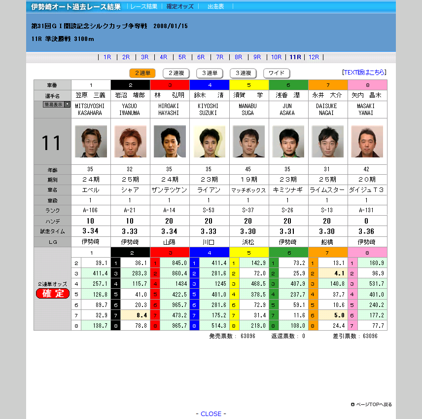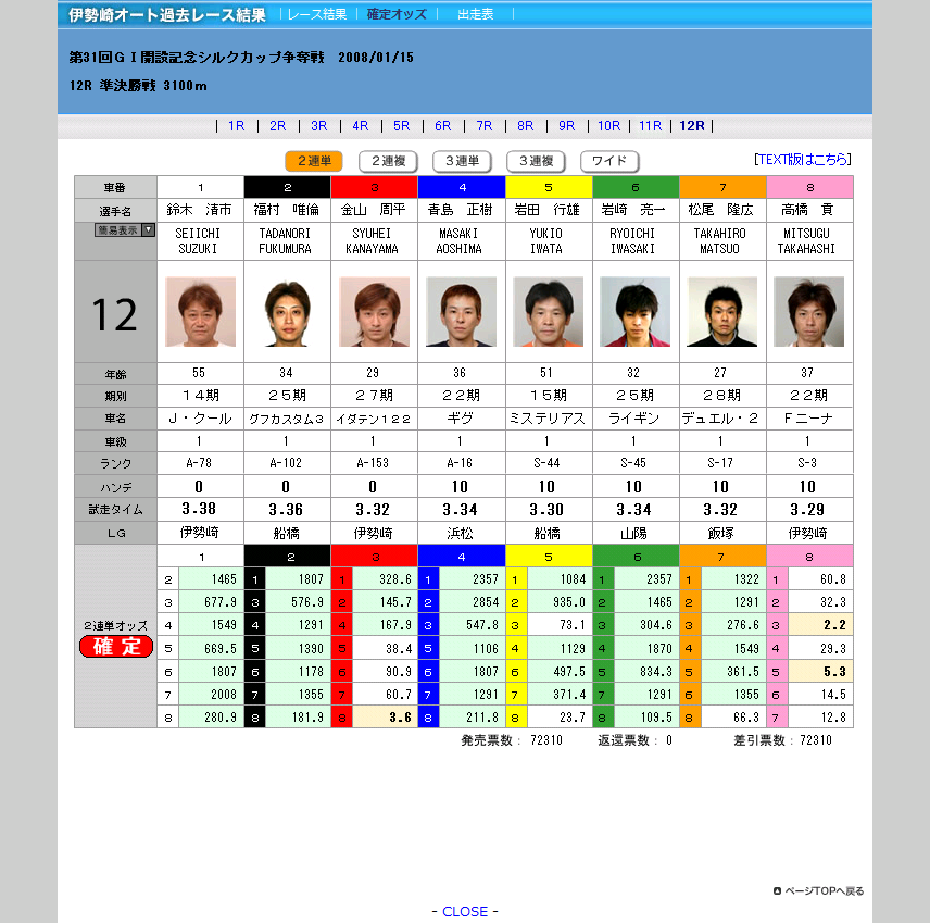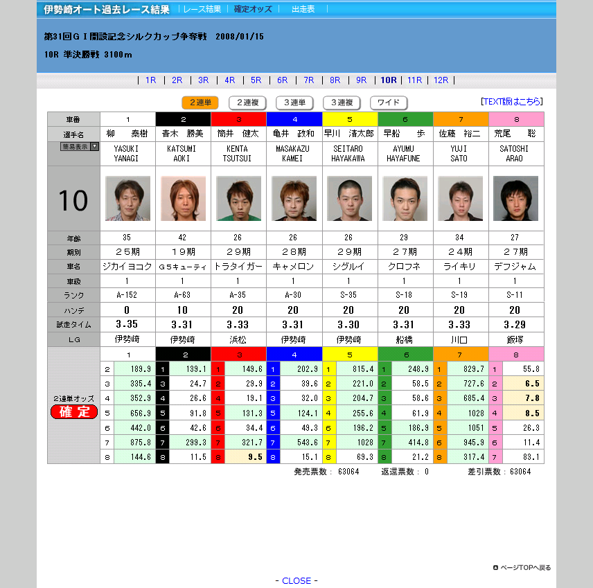 | ¡¡8¡¡ | ÌðÆâ¡¡¾»ÌÚ | A131 | °Ë | 1 20 | ¥À¥¤¥¸¥å£Ô£³ | 0 | 3.36 |
