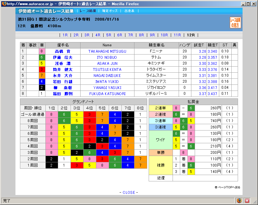 ¶¥Áö·ë²Ì¡§2008/01/17¡ÊºÇ½ªÆü¡ËÂ裱£±¥ì¡¼¥¹(£Óµé·è¾¡)