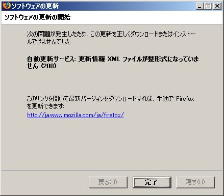 ¼«Æ°¹¹¿·¥µ¡¼¥Ó¥¹: ¹¹¿·¾ðÊó XML ¥Õ¥¡¥¤¥ë¤¬À°·Á¼°¤Ë¤Ê¤Ã¤Æ¤¤¤Þ¤»¤ó (200)
