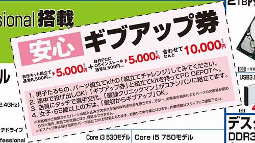 2.ÅÓÃæ¤ÇÅꤲ½Ð¤·OK¡ª¡Ö¥®¥Ö¥¢¥Ã¥×·ô¡×¤ÈÁÈΩ¤Ækit¤ò»ý¤Ã¤ÆPC DEPOT¤Ø¡£