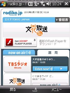 Íפ¹¤ë¤ËFlash Lite 3.1 ¤ò»ý¤Ã¤Æ¤·¤Æ¤âradiko¤Ïʹ¤±¤Ê¤«¤Ã¤¿¡¥¡¥