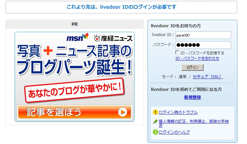 ¥Ö¥í¥°¤ò¿·µ¬¤ËºîÀ®¤¹¤ë¤Ë¤Ïlivedoor ID¼èÆÀ¤¬É¬ÍפǤ¹