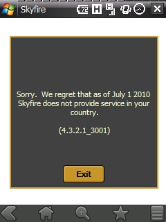Note: Skyfire 1.0 and 1.5 will remain available as a free service in the following countries after July 1st: United States, U.K., Canada, Ireland, Portugal, Spain, France, Germany, Belgium, Italy, Finland, Netherlands, Norway, Sweden, Switzerland, Korea and Taiwan.