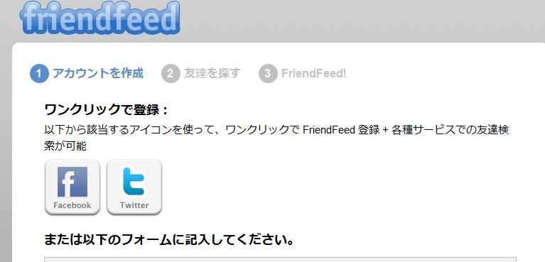 »î¤·¤Ë¡ÖFriendFeed¡×¤Ë¥À¥¤¥ì¥¯¥È¤Ë¡ÖÅÐÏ¿¡×¤ò¥¯¥ê¥Ã¥¯¤·¤Æ¡¢¥æ¡¼¥¶¡¼ÅÐÏ¿¤·¤Æ¤ß¤Þ¤·¤¿¡£