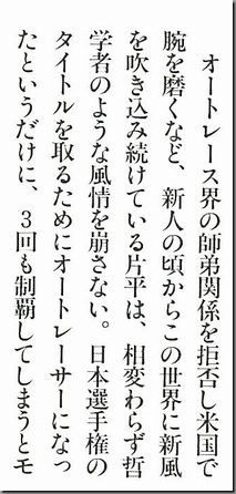 ¥ª¡¼¥È¥ì¡¼¥¹³¦¤Î¥«¥ê¥¹¥ÞŪ¸ºß¤È¤·¤Æ£¹£°Ç¯Âå¸åȾ¤òÃæ¿´¤Ë¥È¥Ã¥×¥¯¥é¥¹¤Ç³èÌö¡¢¹â¶¶¹×¡Ê£²£°£Ö¡Ë¤Ë¼¡¤°ÎòÂ売°Ì¡¢£Ó£Ç£±£µ£Ö¤òµó¤²¤¿Á¥¶¶¥ª¡¼¥È½ê°¤ÎÊÒÊ¿¹ª¤µ¤ó¤¬£²£°Æü¡¢»àµî¤·¤¿¡££´£¹ºÐ¡£»à°ø¤ÏÌÀ¤é¤«¤Ë¤µ¤ì¤Æ¤¤¤Ê¤¤¡£ºë¶Ì¸©½Ð¿È¡£ÄÌÌë¡¢¹ðÊ̼°¤Ï¿ÆÂ²¤Î¤ß¤Ç¼¹¤ê¹Ô¤¦¡£ £¸£µÇ¯¡¢£²£°ºÐ¤Ç¥×¥í¥Ç¥Ó¥å¡¼¡££¹£°Ç¯¤Ë¤ÏÆüËÜÁª¼ê¸¢¤ò´°Á´Í¥¾¡¤·¡¢Á᤯¤«¤éÈóËޤʺÍǽ¤ò¸«¤»¤Ä¤±¤¿¡££¹£³Ç¯£±£°·î¤ËƳÆþ¤µ¤ì¤¿¸½ºß¤Î»ÈÍѶ¥Áö¼Ö¤Ç¤¢¤ë¡Ö¥»¥¢¡×¤ò¤¤¤ÁÁ᤯¾è¤ê¤³¤Ê¤·¡¢¥é¥¤¥Ð¥ë¤ò¼¡¡¹·âÇË¡£ÌµÅ¨¤Î¥¤¥óÁöË¡¤Ç£¹£µ¡Á£¹£¸Ç¯¤Ë£Ó£Ç¥¹¡¼¥Ñ¡¼¥¹¥¿¡¼¤ò£´Ï¢ÇƤ¹¤ë¤Ê¤ÉÂç³èÌö¡£¡È¥»¥¢¤Î¿½¤·»Ò¡É¤È¸Æ¤Ð¤ì¡¢£¹£¸Ç¯¤Ë¤Ï¥°¥é¥ó¥É¥¹¥é¥à¡Ê£Ó£Ç¥ì¡¼¥¹Á´À©ÇơˤòãÀ®¤·¤¿¡£ ¤·¤«¤·¡¢£°£±Ç¯£±·î¤Ë¥¹¡¼¥Ñ¡¼¥¹¥¿¡¼£µ£Ö¤òãÀ®¤·¤Æ¤«¤é¤Ï£Ó£ÇÍ¥¾¡¤«¤é±ó¤¶¤«¤êÀ®ÀÓ¤¬²¼¹ß¡£¤µ¤é¤Ë¡¢ºÇ¶á¤Ç¤Ï½Ð¾ìͽÄê¤Î¥ì¡¼¥¹¤òľÁ°¤Ç·ç¾ì¤¹¤ë¤Ê¤É¼þ°Ï¤â¿´ÇÛ¤¹¤ëÉÔ°ÂÄê¤Ê¾õÂÖ¤¬Â³¤¤¤Æ¤¤¤¿¡£¹øÄˤËǺ¤ó¤Ç¤¤¤¿¤È¤¤¤¦À¼¤â¤¢¤ë¡£¤½¤ì¤Ç¤â¡¢º£·î£¹Æü³«Ëë¤ÎÃϸµÁ¥¶¶¥ª¡¼¥È£Ç£±¡ÖÂ裳£¹²ó¹õĬÇաפǤϣ´£´Æü¤Ö¤ê¤Ë¼ÂÀï¤ò¤³¤Ê¤·¡¢½éÆü¤«¤é£´¡¢£¶Ãå¡£À®ÀÓ¤³¤½¿¶¤ë¤ï¤Ê¤«¤Ã¤¿¤¬¸µµ¤¤Ê»Ñ¤ò¸«¤»¤Æ¤¤¤¿¡£¤·¤«¤·¡¢£±£±Æü¤Î£³ÆüÌܰʹߤϤޤ¿¤·¤Æ¤â·ç¾ì¡ÊÍýͳ¤Ï¿ÈÂÎÉÔÎɡˡ£·ë²ÌŪ¤Ë¡¢¤³¤Î¥·¥ê¡¼¥º¤¬ÊÒÊ¿¤µ¤ó¤Î¥é¥¹¥È¥ì¡¼¥¹¤È¤Ê¤Ã¤¿¡£